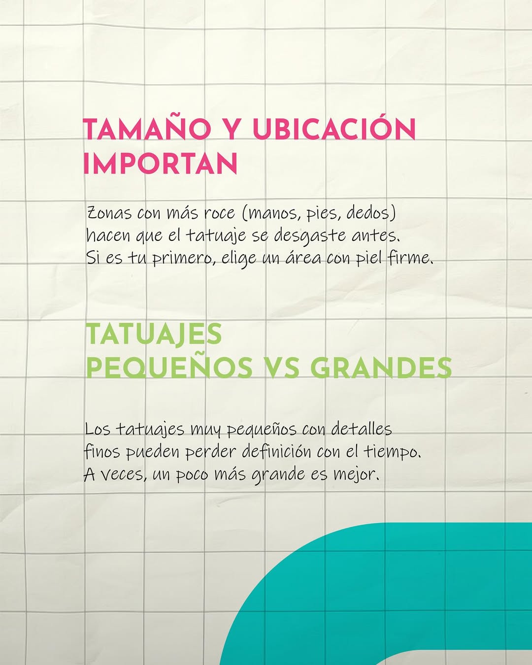 Zonas con mucho roce desgastan el tattoo antes. Y si es muy peque y detallado, puede perder definición con el tiempo.
